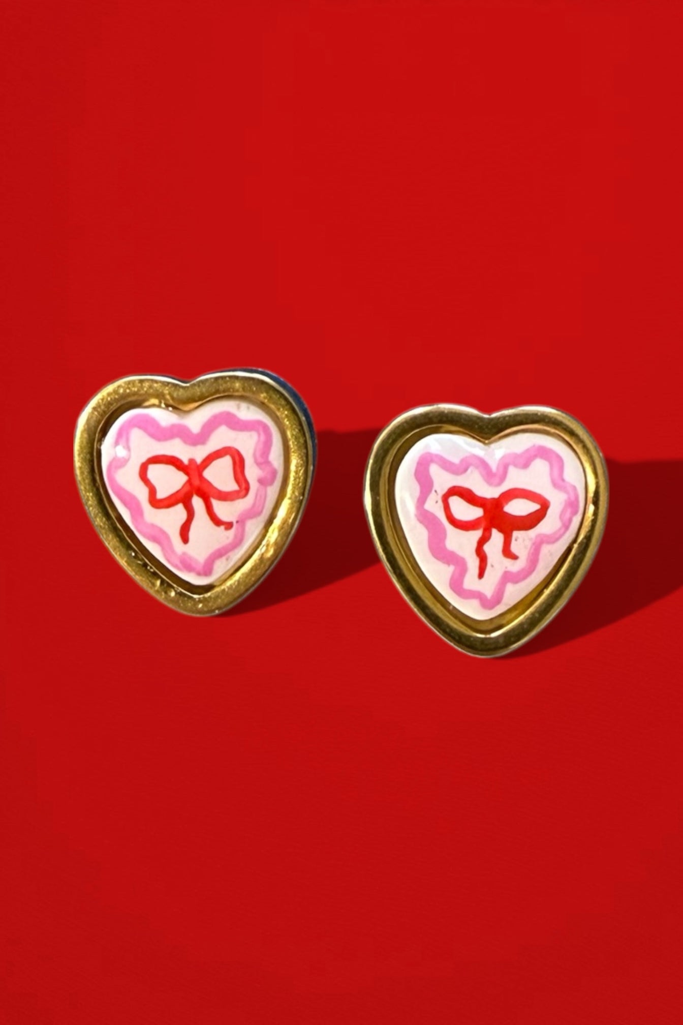 Pendiente de acero inoxidable con forma de corazón y dije de arcilla polimerica pintada a mano
